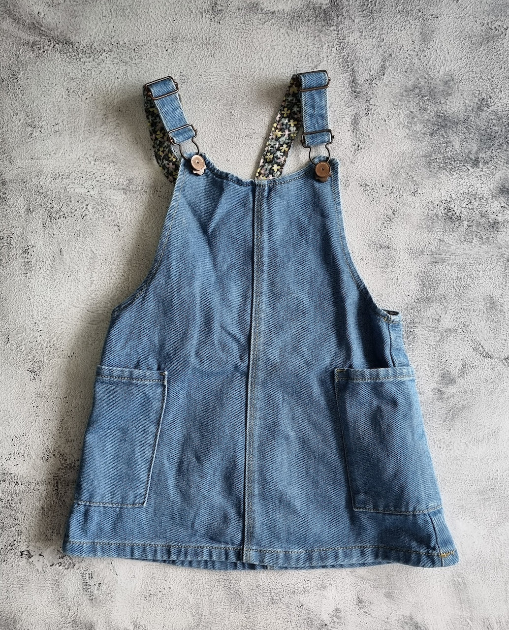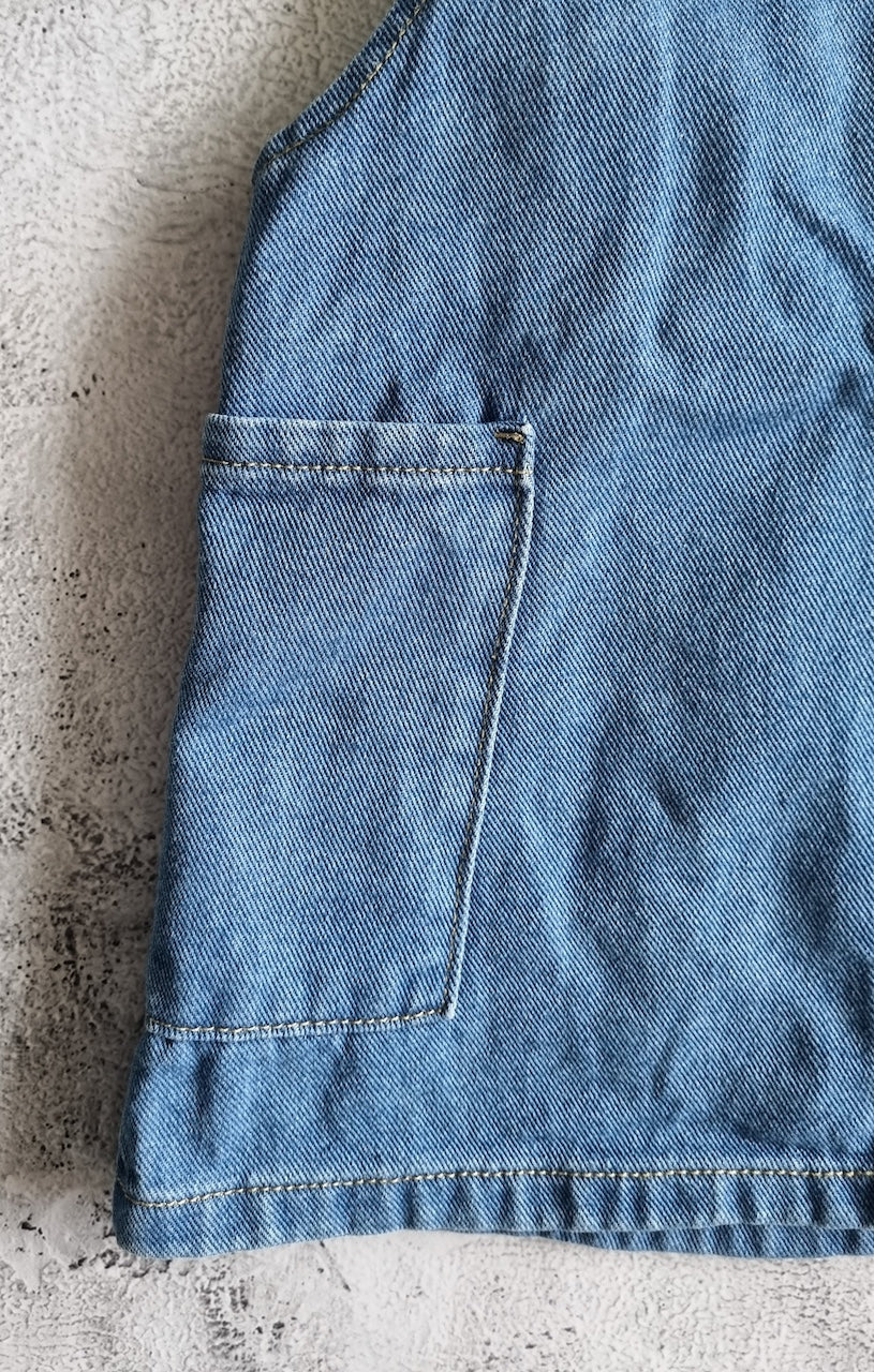 Hermosa jardinera de jean con bolsillos en los laterales. Cargadera ajustable. En excelente estado.