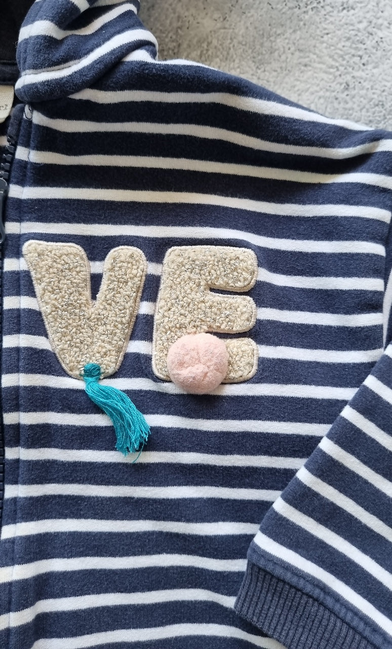 Chaqueta delgada con chompa. Hermoso aplique en la parte delantera.