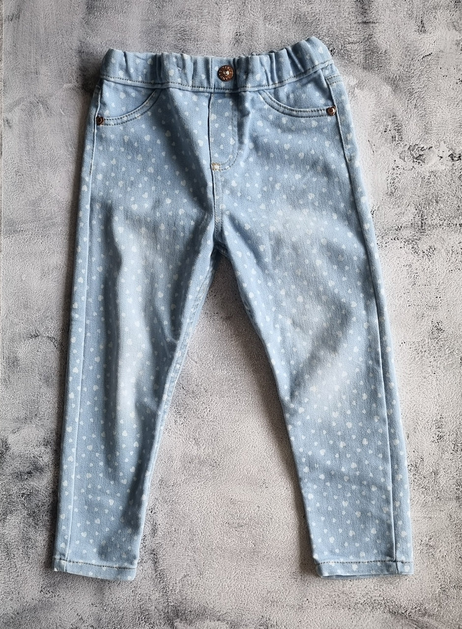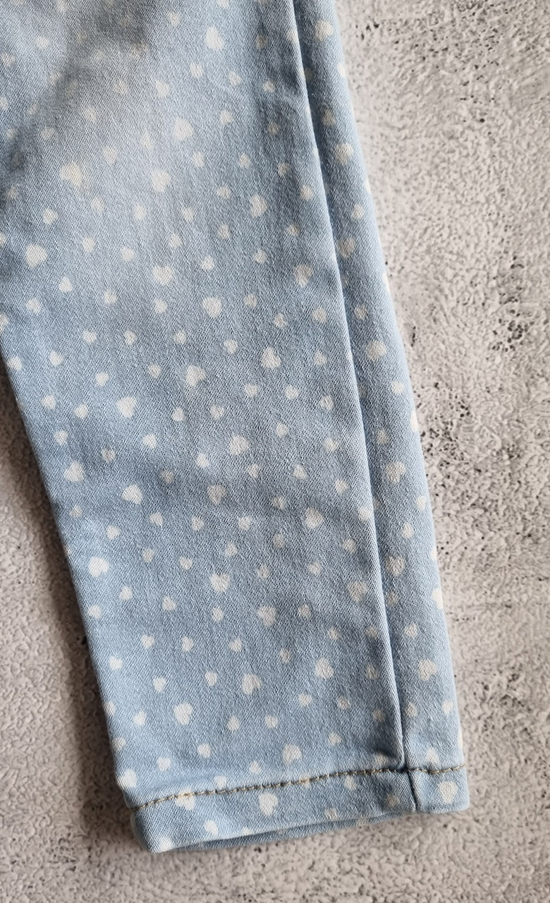 Jegging de tela delgada, con estampado de corazones pequeños, cintura ajustable.
