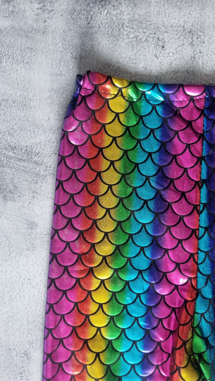 Hermoso legging con estampado de cola de sirena, tela con visos.