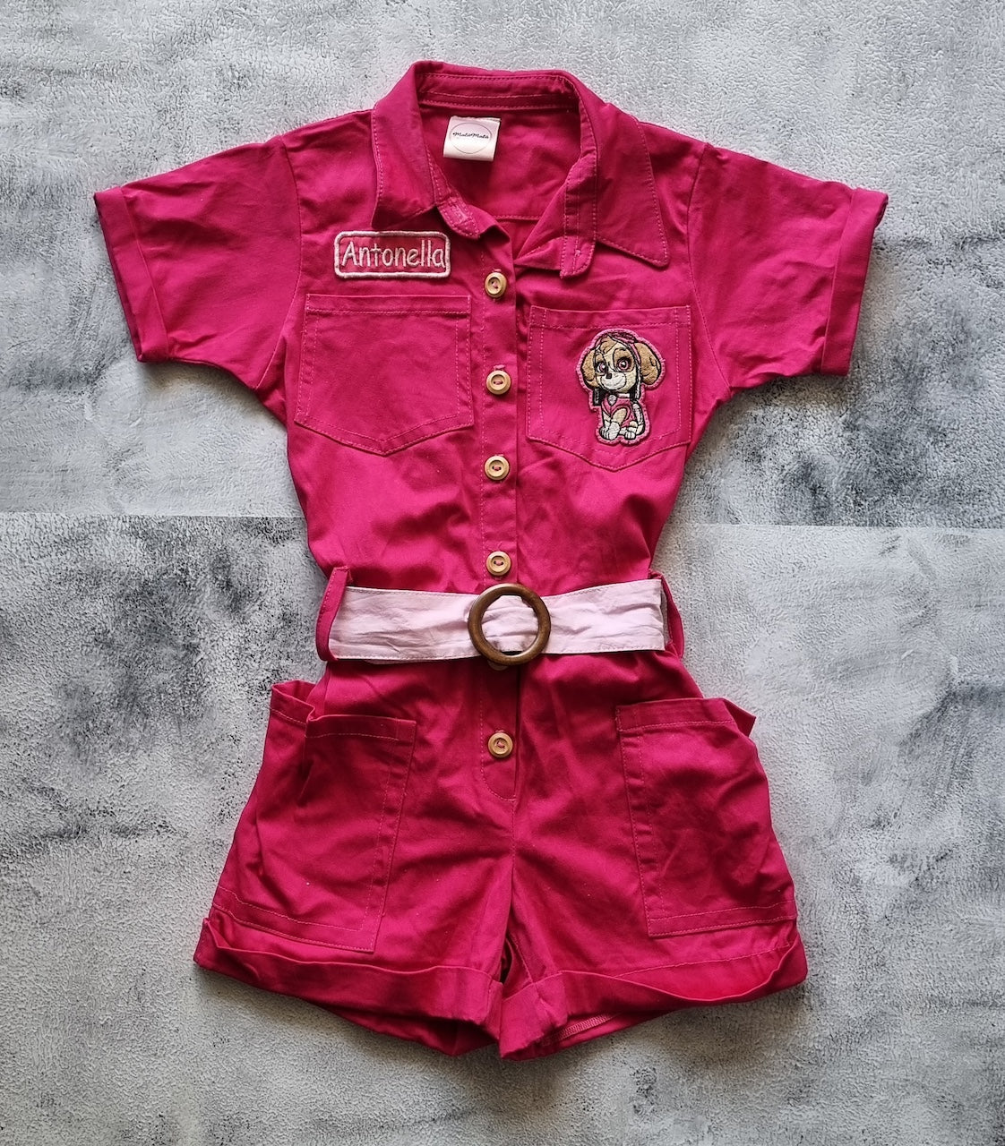 Enterizo de tela stretch de short con cinturón. Tiene un parche de Skye de Paw Patrol y otro con el nombre Antonella que se puede descoser. En excelente estado.
