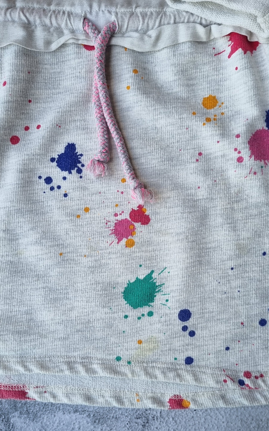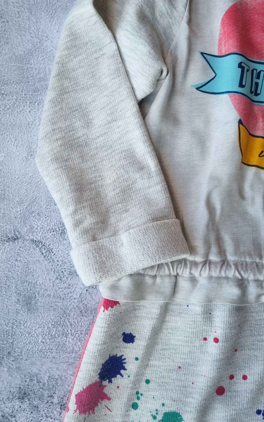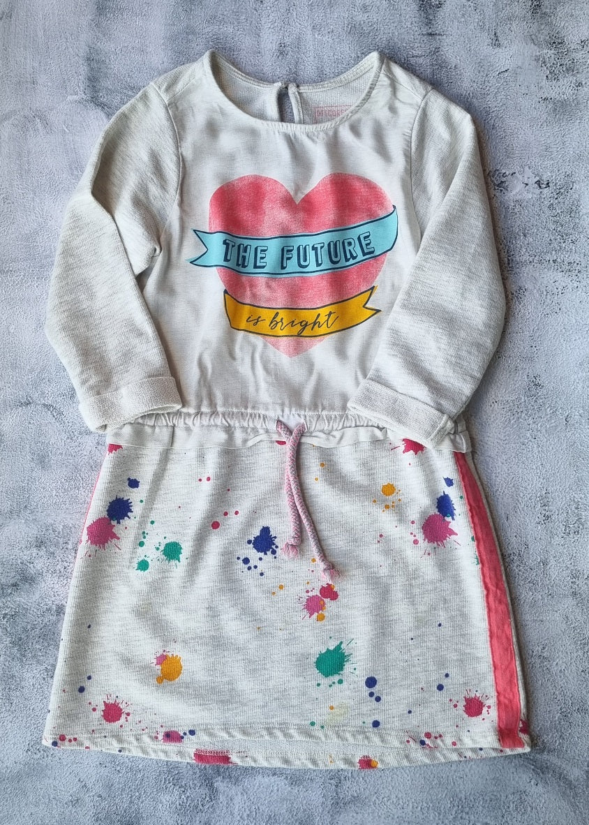 Vestido manga larga estampado, de estilo amplio, con cordón para ajustar en cintura. Detalle de uso: manchita clarita en la falda.
