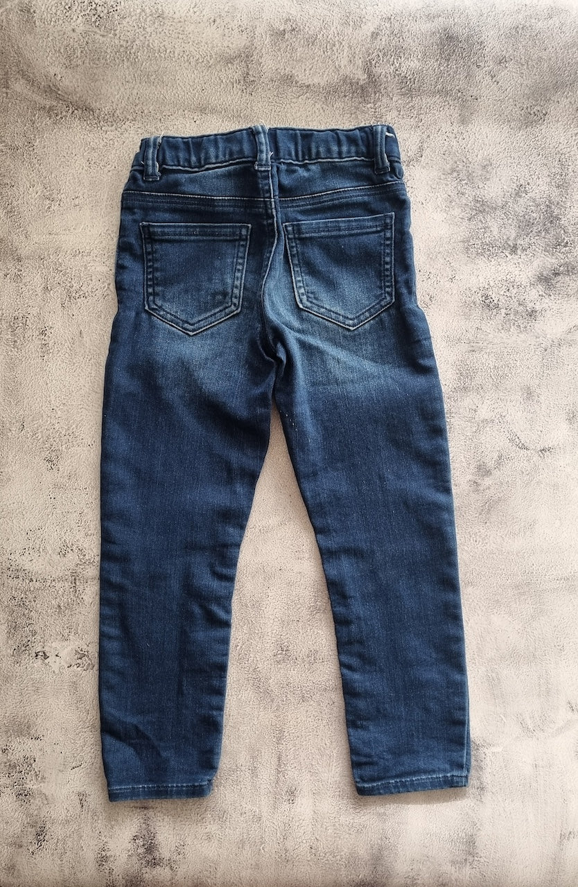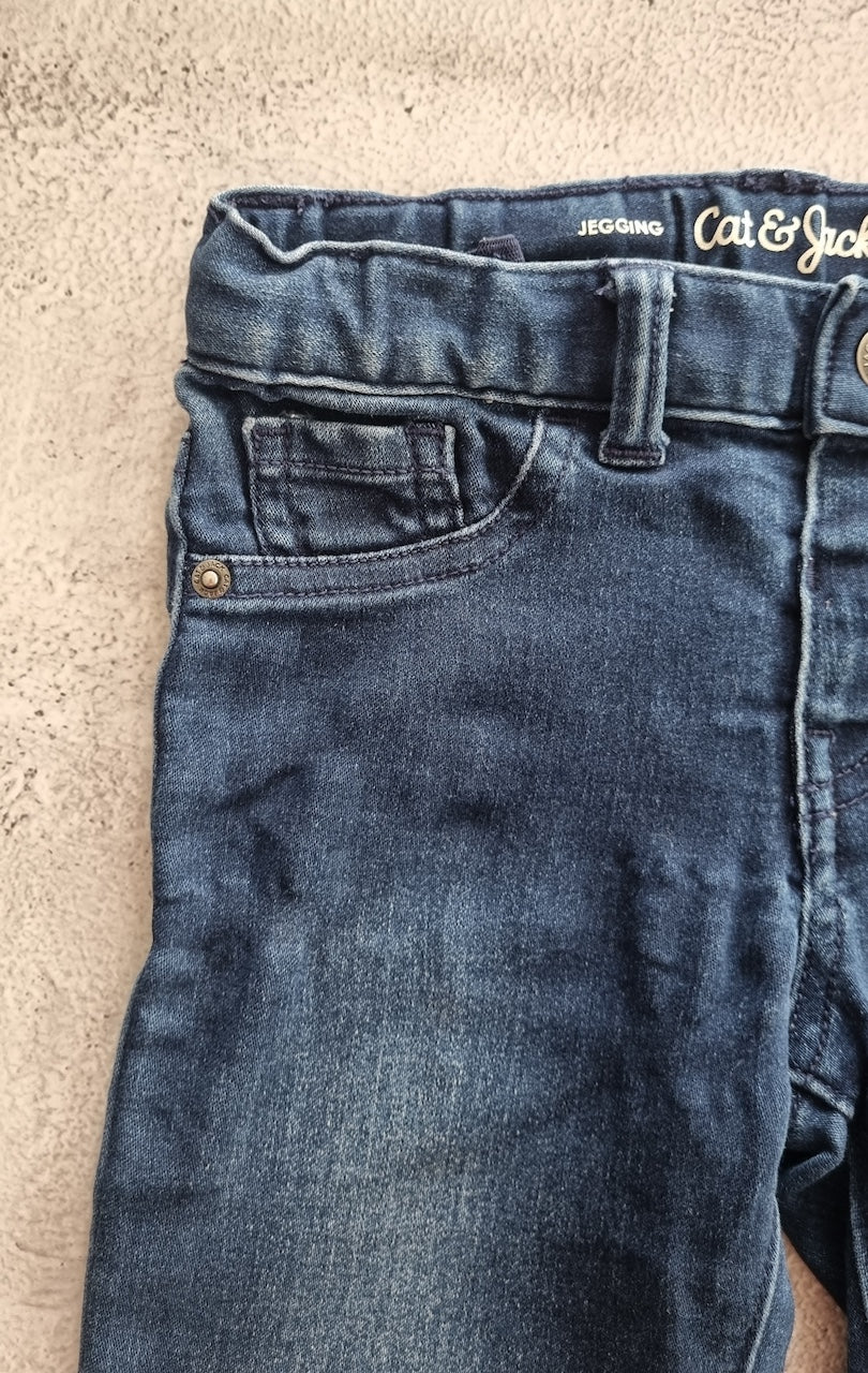 Jeggin de jean super stretch. Ajustado en pierna y tobillo, cintura ajustable. Bolsillos en la parte de atrás.